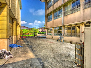 1年教室、たんぽぽ教室の前もすべて花壇などが撤去されています