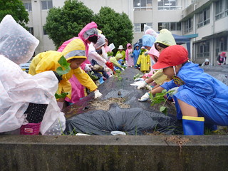 1組も2組も協力して田植えをすることができました。5年生の社会で学習する内容を体験することができて良かったですね!
