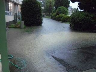 学校も排水が悪いところでは水がたまっていきましたが、雨も弱まり、水は引いていきました。