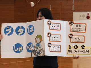 そのため、外で予定されていた4・5・6年生の交通教室は体育館で実施しました。