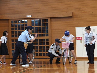 講話では自転車の安全な走行や点検について等の学習をしました。
