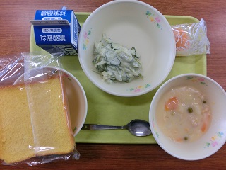 にんじんパン、クリームシチュー、グリーンサラダ、