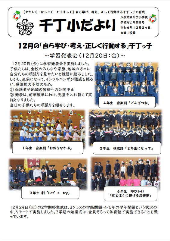 千丁小だより第8号です。