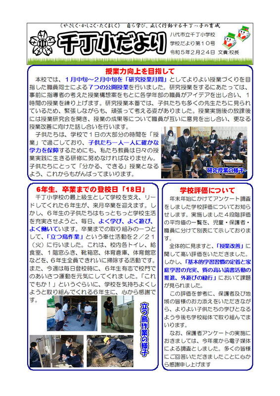 子どもたちの様子、学校からのお知らせなど随時紹介していきます。