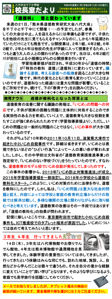 子どもたちの様子、学校からのお知らせなど随時紹介していきます。