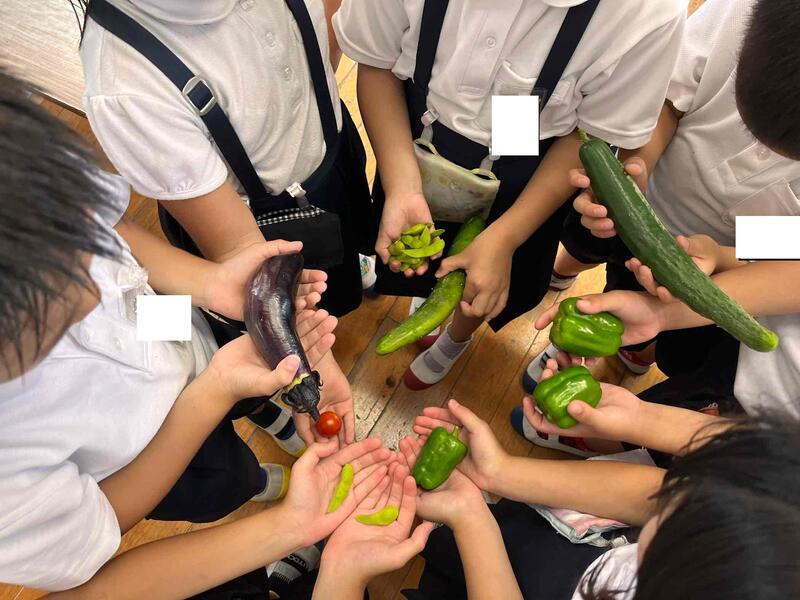 蒸し暑かったり、大雨が降ったりする中、毎朝水かけを欠かさず行いました。おかげで立派な野菜ができました。収穫したときの子供達の目はキラキラ輝いていました。