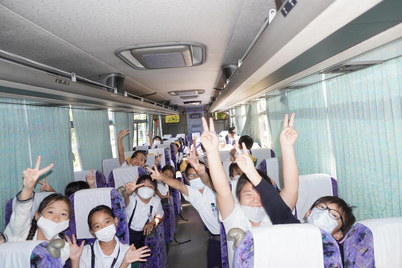 バスに乗る前からドキドキ、ワクワクしていた子供たち。