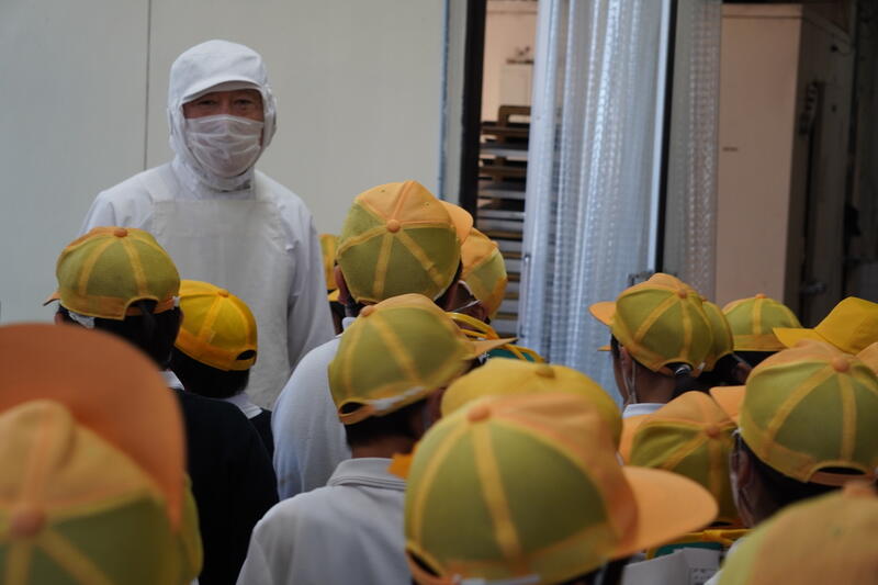 彦一本舗の工場では、さっそく中を見学させていただき、職人さんに質問したり、聞いたことをメモしたり、お菓子の絵を描いたりと、子供たちは真剣に学んでいました。