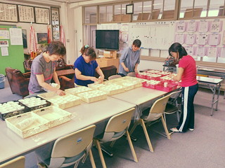 一つ一つ手作業で準備をします。とても大変な作業ですが、おかげで子どもたちがうがいをすることができます。