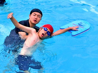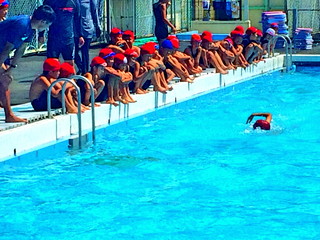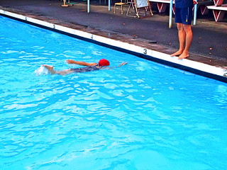 水泳教室の最初では3名が25m泳ぐことができましたが、今日の終わりには9名が25m泳ぐことに成功しました。
