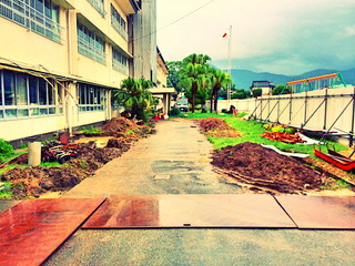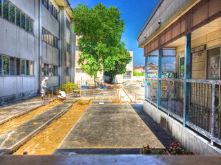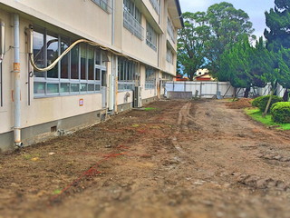 1年教室、たんぽぽ教室の前もすべて花壇などが撤去されています