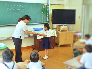 緊張感をみなぎらせて受け取ったりとそれぞれの通知表を受け取っていました。