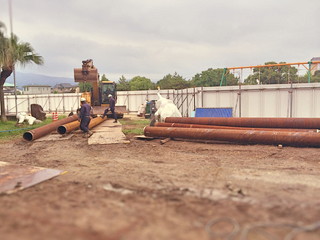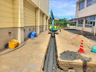 掘られた溝は埋められ、大きな機械が入って作業が行われています
