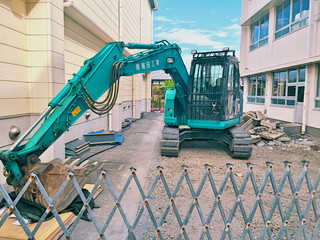 いよいよ耐震工事が始まりました。いつもとちがう学校の顔が見られます。