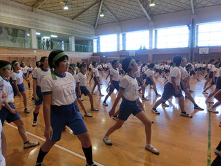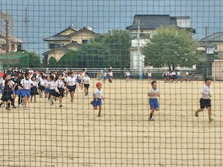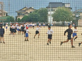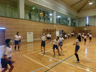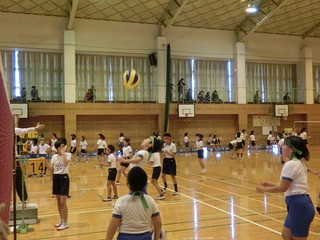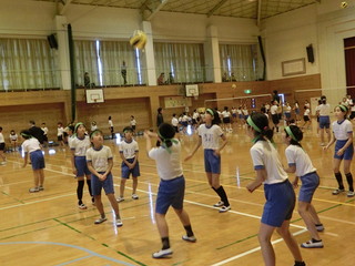 みんなで協力して、鏡小、文政小、有佐小、鏡西部小の児童と楽しくバレーをしました。