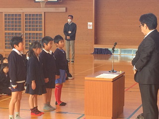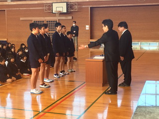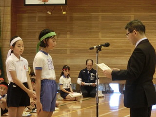 表彰では陸上や絵画、読書発表、科学展、部活動など様々ありました。