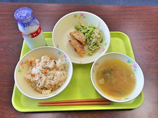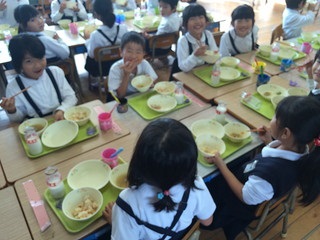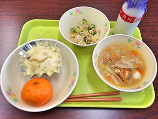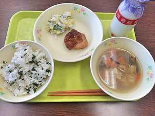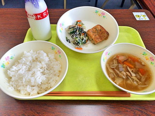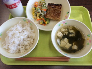 今日の給食は豆腐のおろしソースかけです。とってもおいしかったですね!