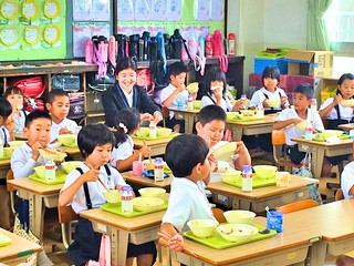 今日から28日まで新しく教育実習の養護の先生がいらっしゃいます。楽しそうに2年生と一緒に給食を食べています!