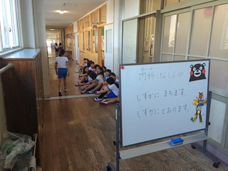 今日は内科検診がありました。廊下で静かに待つ様子が見られました。