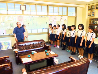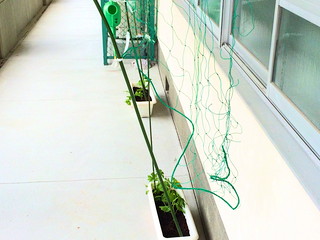 気温が高くなってきました。学校では環境委員会が緑のカーテンに取り組み、職員室、事務室、校長室に陰ができるよう、ツルレイシを植えました。電気代が節約できるといいですね。