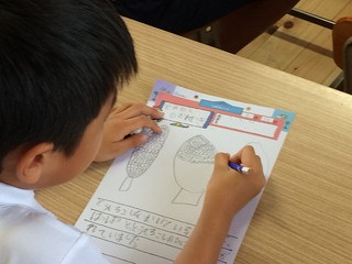 今日は朝から4年生が3年生に勉強を教えている姿が見られました。