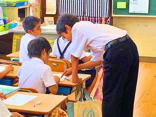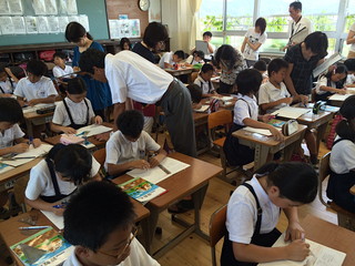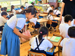 今日は千丁中学校から小学校へ職場体験に中学生が来ました。