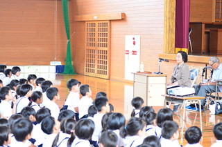 戦争のときの学校の様子や、若者たちの様子、原子爆弾目撃の様子など、お話を静かに聞きました。