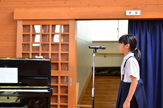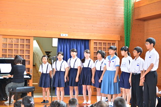 最後に「ふるさと」を音楽放送委員会、職場体験で千丁小学校に来ていた中学生が歌い、お見送りをしました。