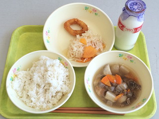 今日の給食は山形県の郷土料理「芋煮」がでました。おいしかったですね!
