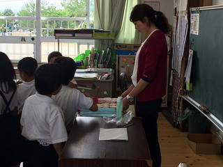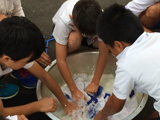 今日の学校の様子です。6年生は洗濯の実習をしています。