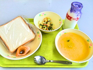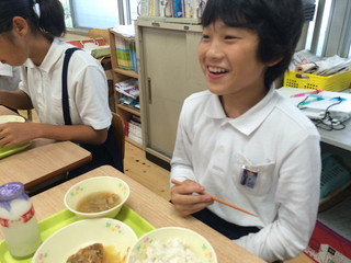 今日の給食は味噌汁が具だくさんでおいしかったですね!