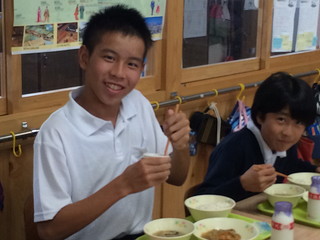 今日の給食は「だご汁」がでました。熊本産の米粉を使ったものです。おいしかったですね!