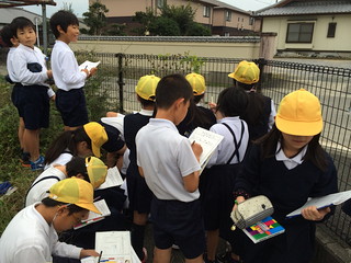 秋らしく涼しくなってきました。秋の生物を観察している様子です。