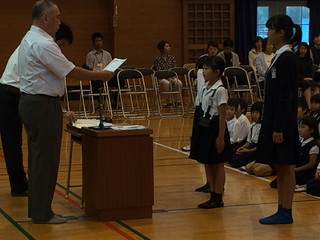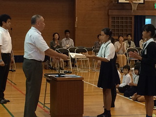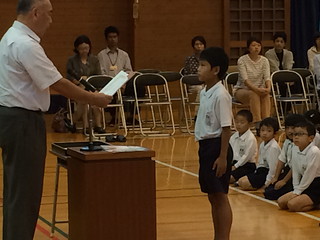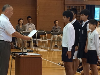 今日の表彰は絵画、俳句、科学展、陸上記録会、部活の大会などたくさんありました。
