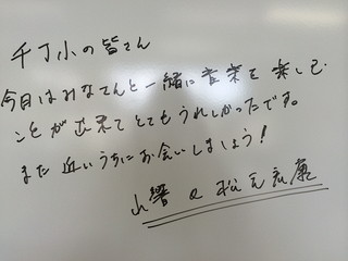 今日の学校の様子です。校長室のホワイトボードに昨日の指揮者、松元さんからメッセージが残されていました!