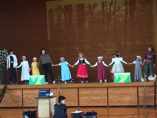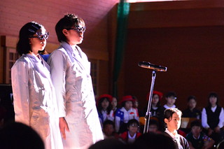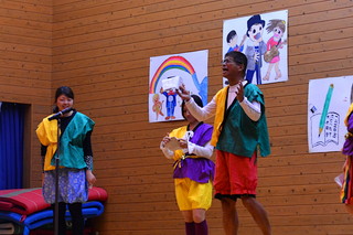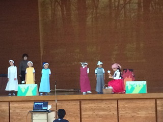 先生たちからの発表もありました。劇と歌を披露しました。校長先生のギターが冴え渡りました。