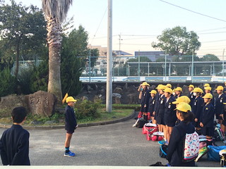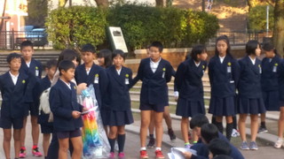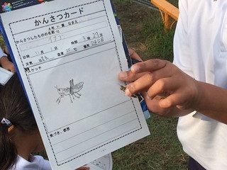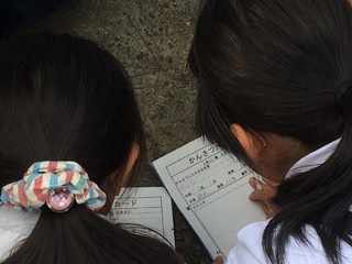 今日はとても気温が低くなりました。秋の動物探しに校庭を探している様子です。