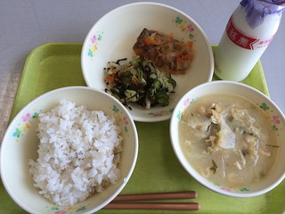 今日の給食は豚汁が出ました。あたたまりましたね!