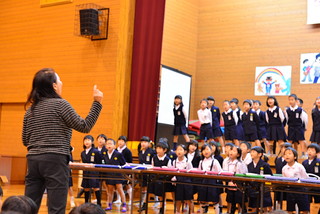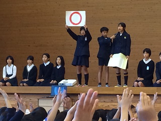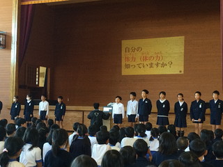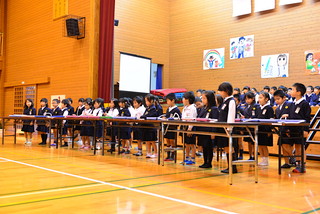 6年生の発表にはクイズがありました。みんな手を積極的に挙げて参加していました。