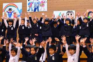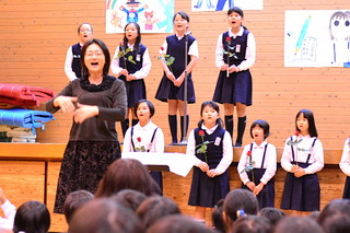 1年生は合奏と合唱です。鍵盤ハーモニカや鈴で合奏する姿が素晴らしかったです。