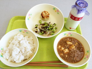 今日の給食は麻婆豆腐でした!おいしかったですね!