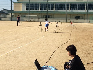 今日は熊本大学大学院の院生の方が50m走のデータをとりに来校されました。