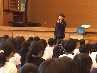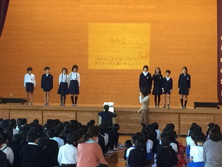 6年生は熊本のことを発表しました。祭り、熊本城、特産品などについて発表がありました。