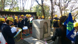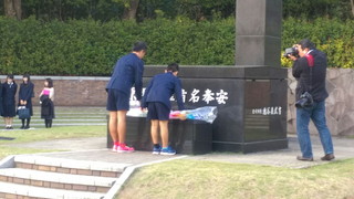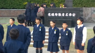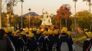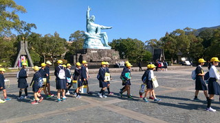 平和公園での学習が始まりました。平和祈念像の前で何を思いながらあるいているのでしょうか?