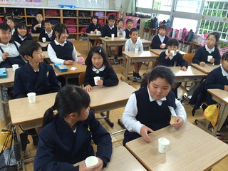 今日は一気に肌寒い一日になり、温かい給食を心待ちにしている子どもたちの姿が見られました。