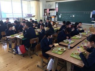 給食中に校長先生から給食への感謝についての話がありました。