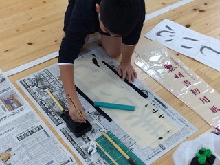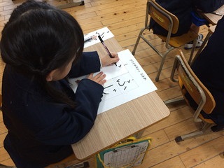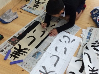 今日は3年生が習字をがんばっていました。
