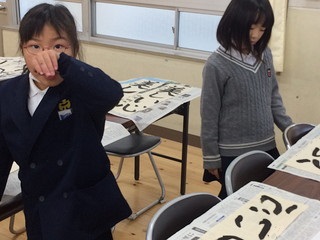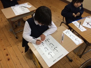 今日は1年生が書き初めをしていました。