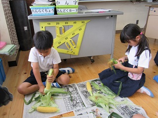 昨日お伝えしたように、今日のとうもろこしは、1・2年生が