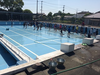3・4時間目は5年生が、5・6校時は6年生がプールをぴかぴかにしました。